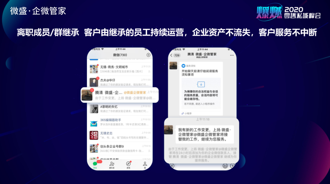 最核心最关键的点,当我们把客户加到企业微信上,客户就变成企业在线化的资产,而非是员工的个人资产。
