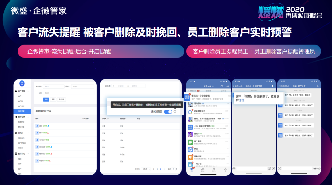 同时配合企微管家客户流失提醒功能,我们还可以对删除的客户做一个提醒,或者加好友的时候去提醒他打一个标签。