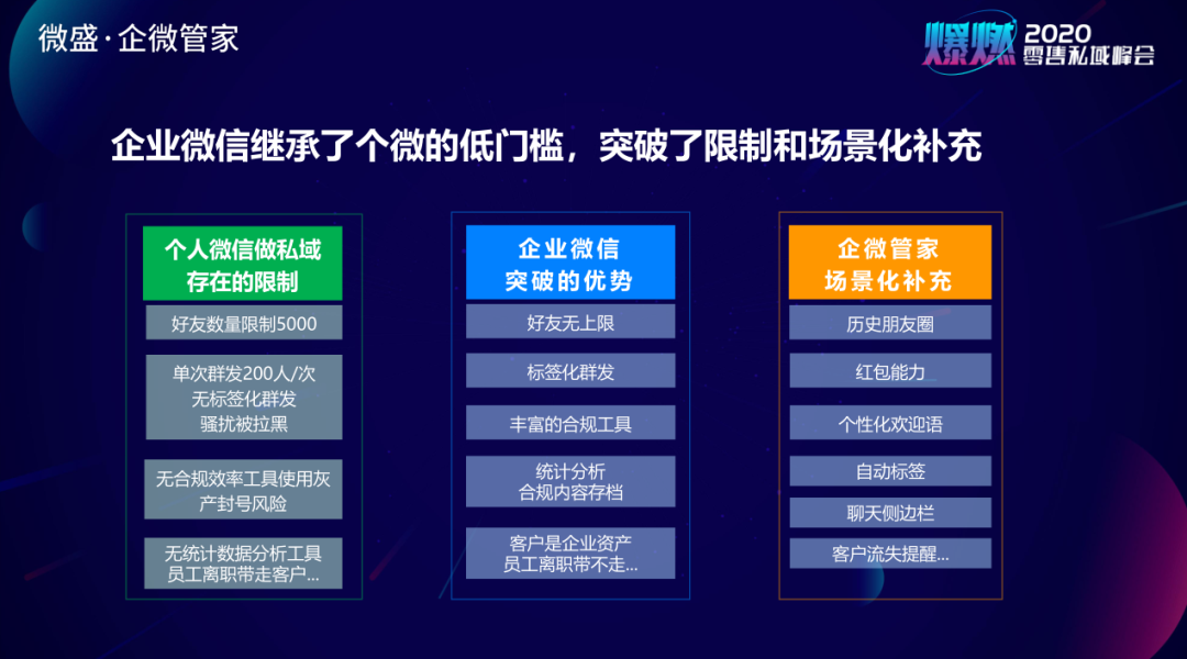 微盛·企微管家的创始人杨明在11月20日的「上海零售私域峰会」上分享说:
